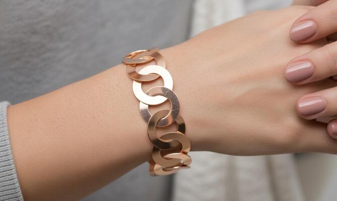 Bracciale morbido in argento 925 bagnato nell'oro rosa con cerchietti martellati intrecciati tra loro e realizzato a mano da Maestri artigiani