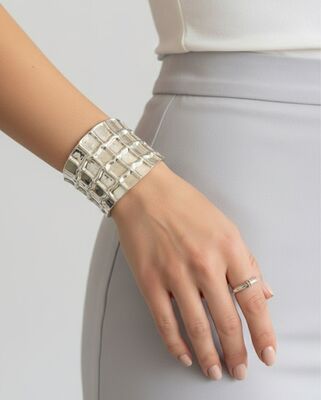 Bracciale in argento 925 realizzato artigianalmente con quadri cesellati.
