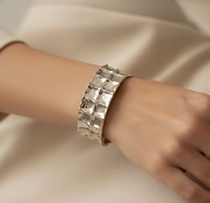 Bracciale in argento 925 realizzato artigianalmente con quadrati cesellati.
