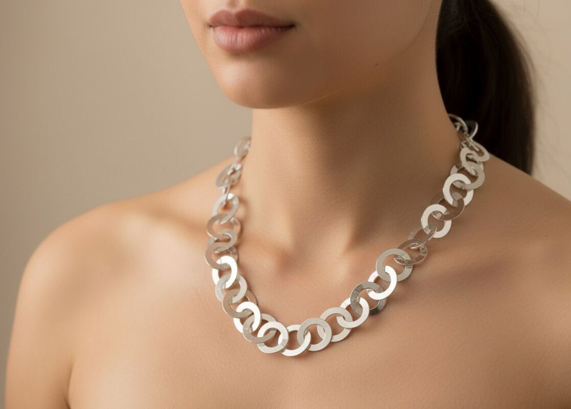 Collana in argento 925 con cerchietti saldati uno ad uno e completamente martellati a mano dai Maestri di Brandimarte.