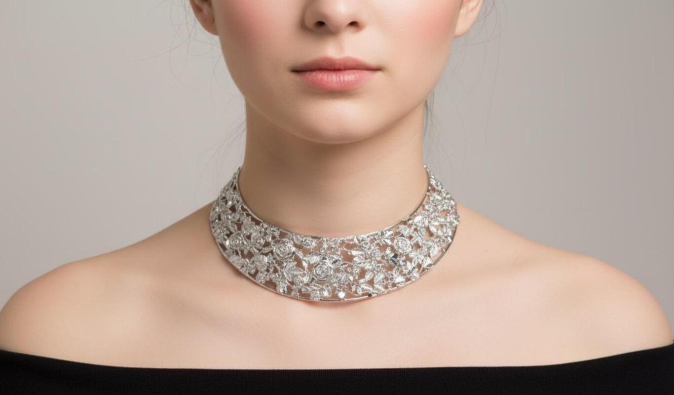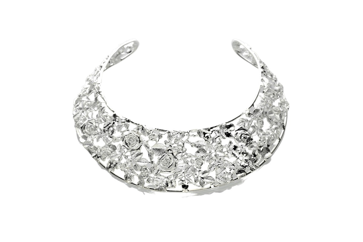 Collare rigido con rose in argento 925 traforato