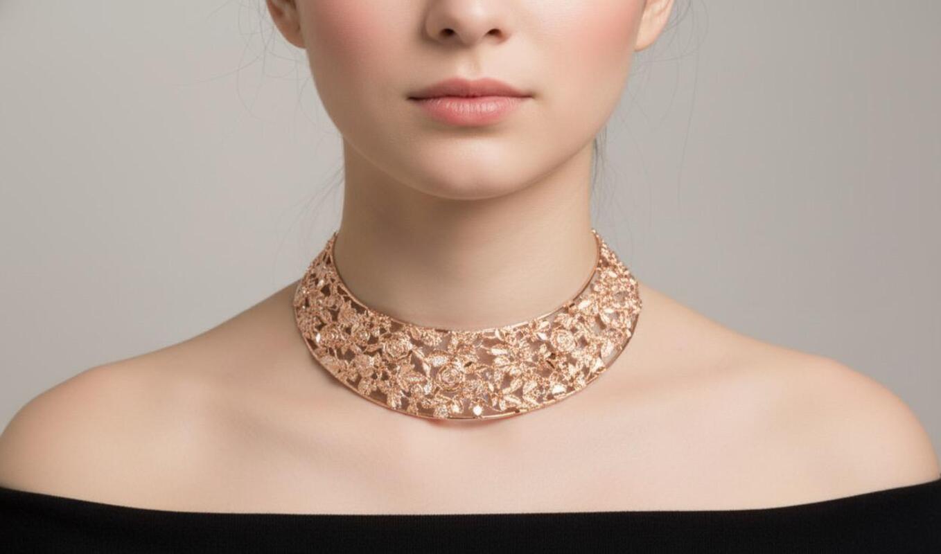 Collare rigido in argento 925 traforato e bagnato nell'oro rosa.