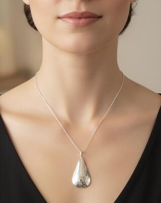 Pendente goccia in argento 925 completamente martellato a mano dai Maestri Artigiani