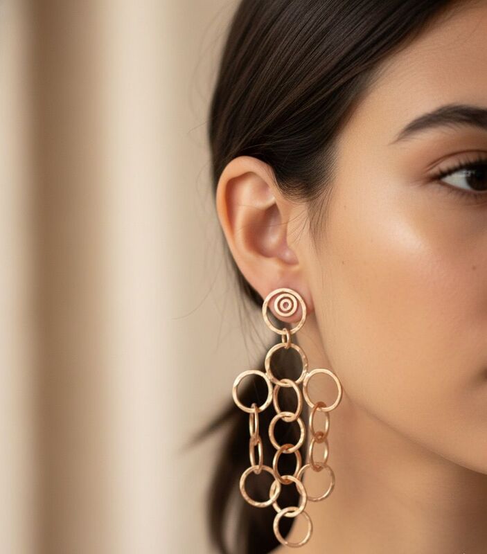 Orecchini cerchietti intrecciati realizzati in argento 925 bagnati in oro rosa.