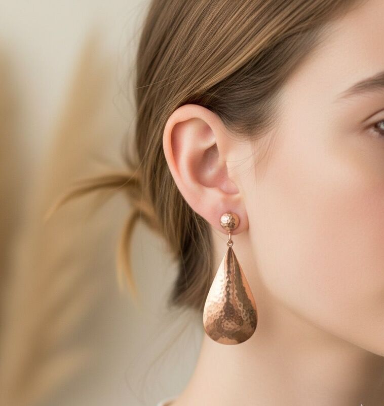 Orecchini linea Goccia, realizzati in argento 925 bagnati in oro rosa.